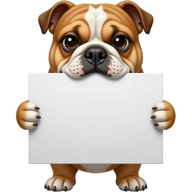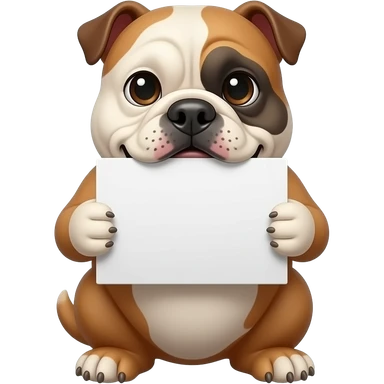 a bulldog holding a white sign with its mouth emoji