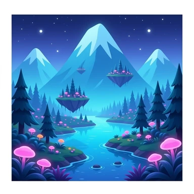 An ultra-realistic 3D smooth render of Pandora from the Avatar movie, designed in a vibrant cartoon style with floating mountains, glowing bioluminescent plants, and soft neon-blue forests with pink and purple accents. emoji