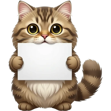 a persa cat holding a white sign with its mouth emoji