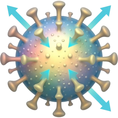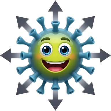 A vibrant virus with arrows around it to indicate pathophysiological mechanisms emoji