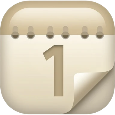 A cute Apple-style calendar emoji in soft cream and beige tones, with a minimal and clean design. Rounded corners, subtle shadows, and a smooth glossy finish. The calendar has a simple layout with a small date number, giving it a cozy and aesthetic look. emoji