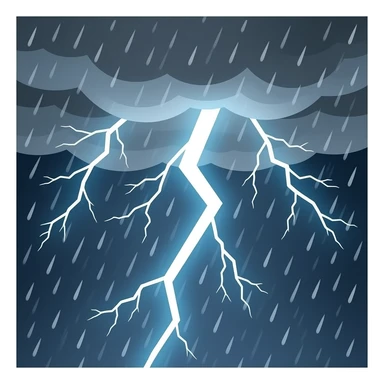 A bad thunderstorm with lightening strikes, dark ominous clouds and and white hail the size of golf balls raining down from the sky emoji