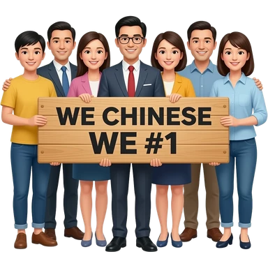 A group of chinese people showing a sign*we chinese we #1 emoji