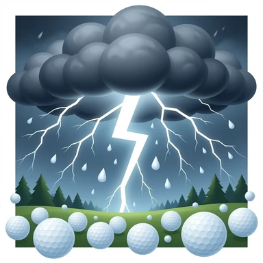 A bad thunderstorm with lightening strikes, dark ominous clouds and and hail the size of golf balls emoji