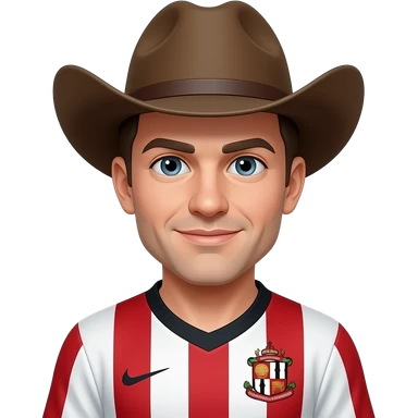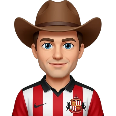 A person with a cowboy hat on 🤠in a Sunderland football kit on with a emoji face emoji
