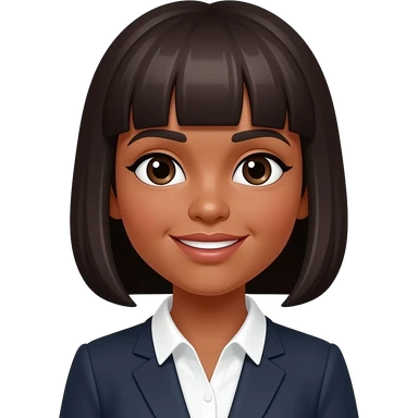 a teacher with dark brown or black hair with bangs and she has brown skin emoji