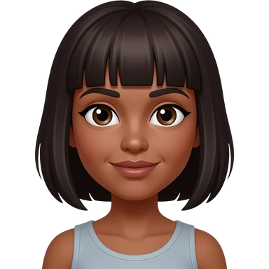 a woman with dark brown or black hair with bangs and she has brown skin emoji