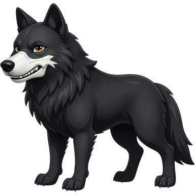 Anthropomorphic edgy cool badass black wolf with a white upper muzzle skull part emoji