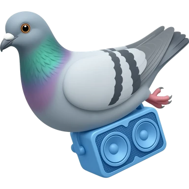 A messenger pigeon carrying a blue tooth speaker emoji