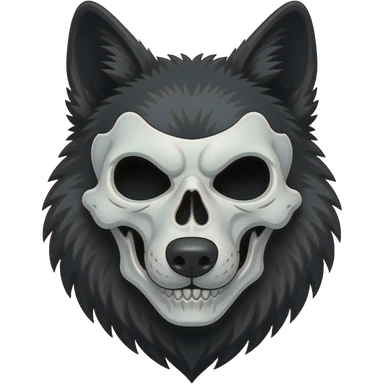 Anthropomorphic edgy cool badass black wolf with a white skull mask emoji