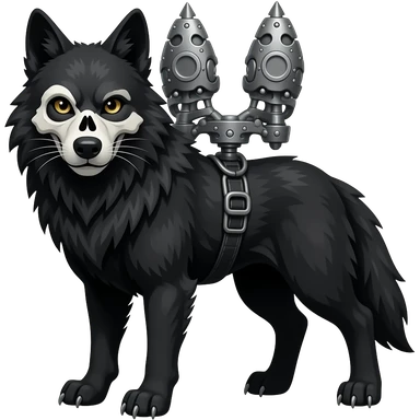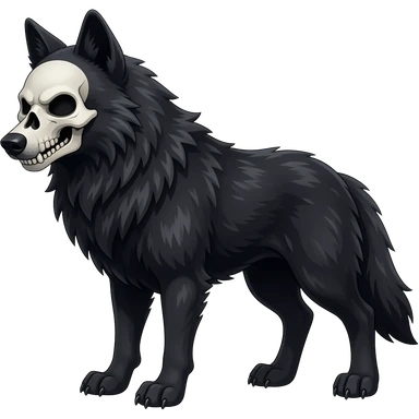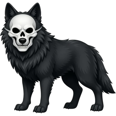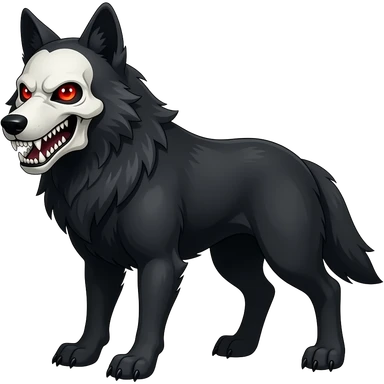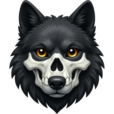 Anthropomorphic edgy cool badass black wolf with a white upper muzzle skull part, skull face emoji