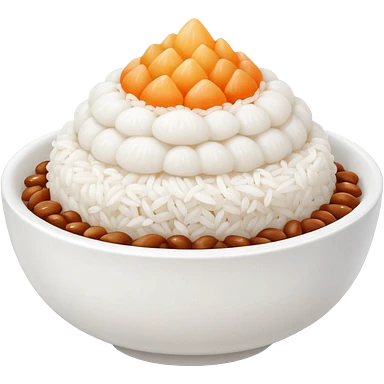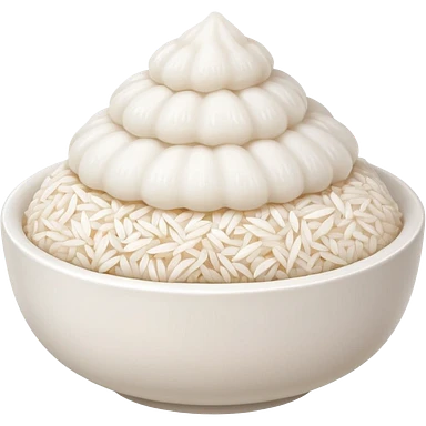 A cute white bowl of steaming rice piled high like a small mountain (korean style gobongbap), pure white rice, emoji