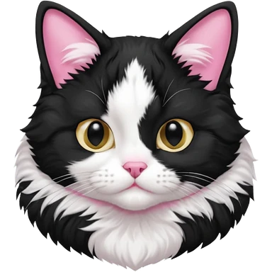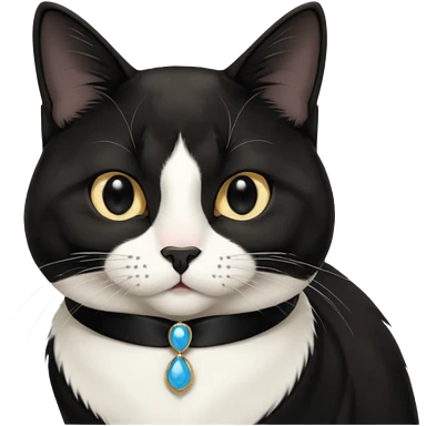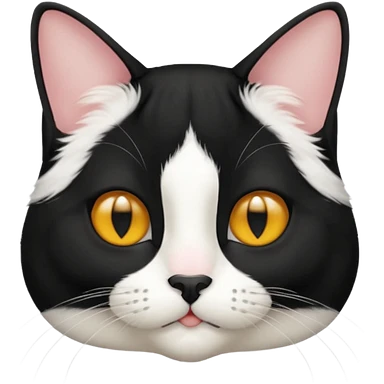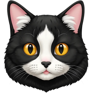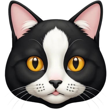 A tuxedo cat, not wearing tuxedo, top half body, a black mark near his mouth under the nose emoji
