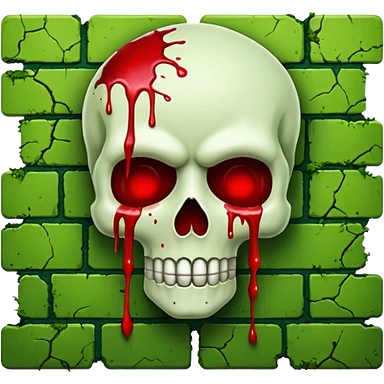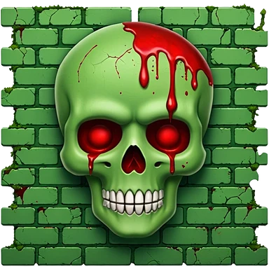 A moss covered green brick wall splattered with blood, in the style.of your bleeding skull art. emoji