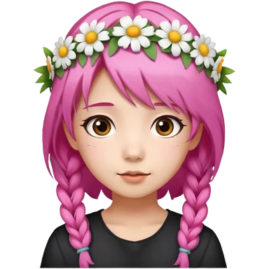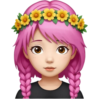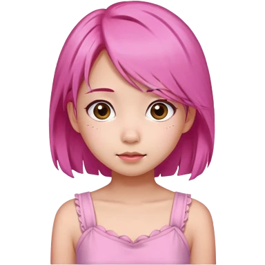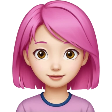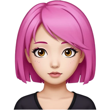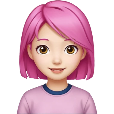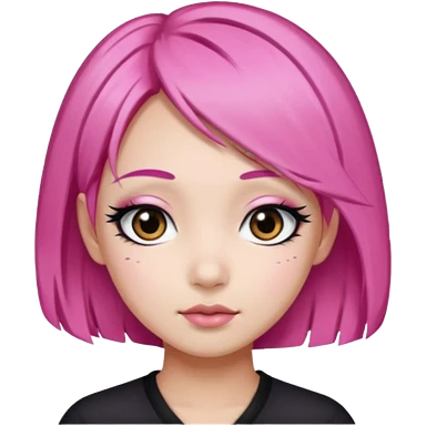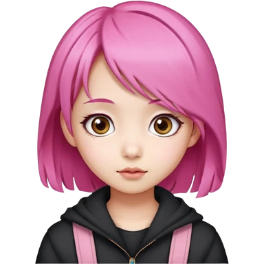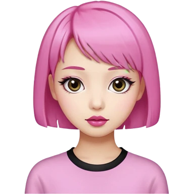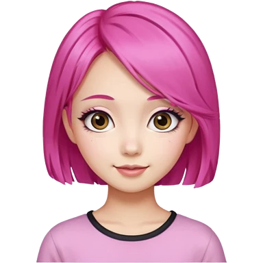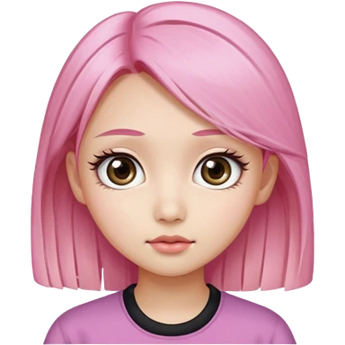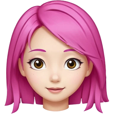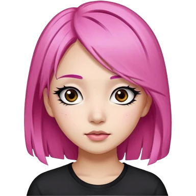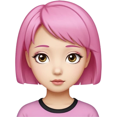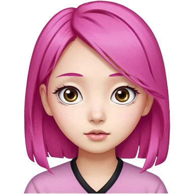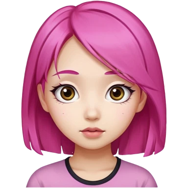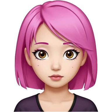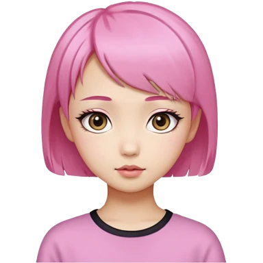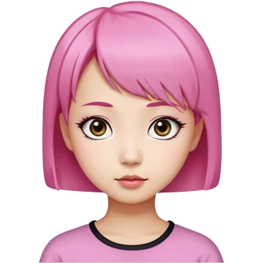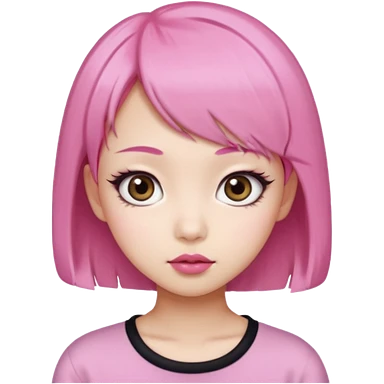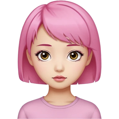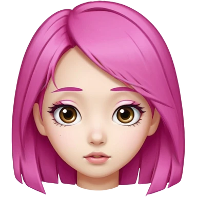 An Asian girl with pink hair, big eyes, thick eyebrows, and long eyelashes; emoji