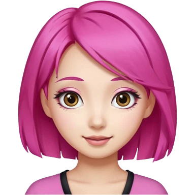 An Asian girl with Fashion pink hair, big eyes, thick eyebrows, and long eyelashes; emoji