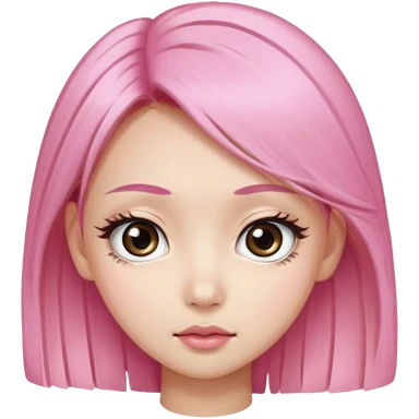 An Asian girl with pink hair, big eyes, thick eyebrows, and long eyelashes; only her head... emoji