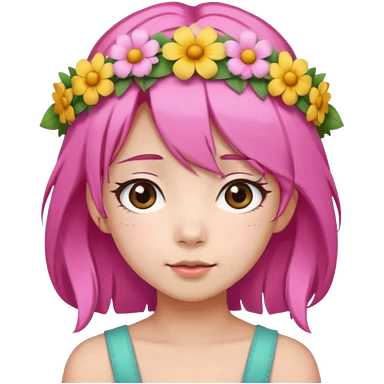 An Asian girl with pink short hair, big eyes, thick eyebrows, and long eyelashes; emoji