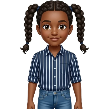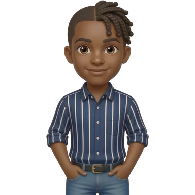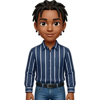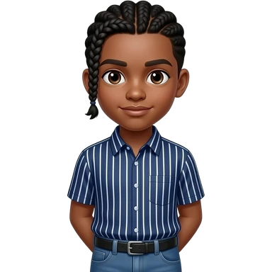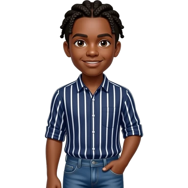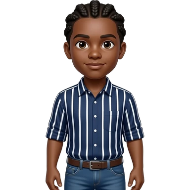 African American teenage boy wit cornrow braids wearing a navy blue button up shirt with white vertical stripes wearing denim jeans emoji