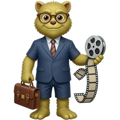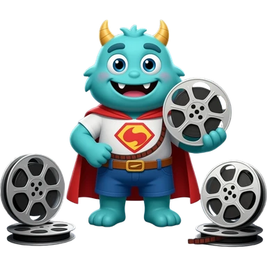 a product hero – librarian of collection of a long-lost movie collection, furry monster similar to monsters and company, but with analog fillm roll as a prop – make him a monster but a nice one emoji