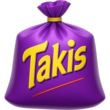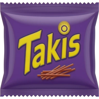 A purple bag that says Takis in yellow text and simple font with small red sticks on it at the bottom emoji