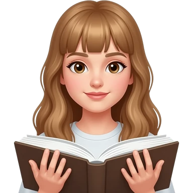 a young woman with long light brown hair and fringe and blue eyes is very happy emoji