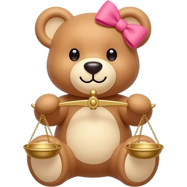 A teddy bear with a bow on his ears and holding a ⚖️ in hand emoji