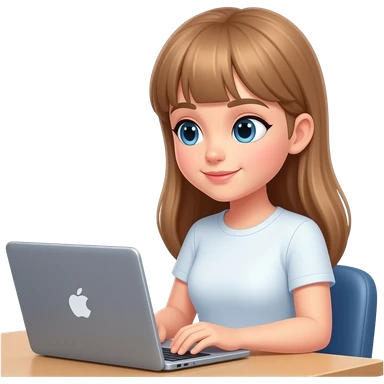 a young woman with long light brown hair and fringe is working with the laptop emoji