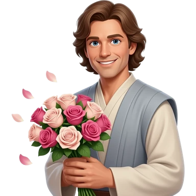 a yellow medieval knight holding a chicken leg and a pink carnation emoji
