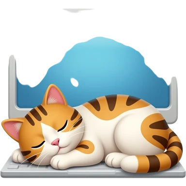 a cat is sleeping in front of a computer emoji