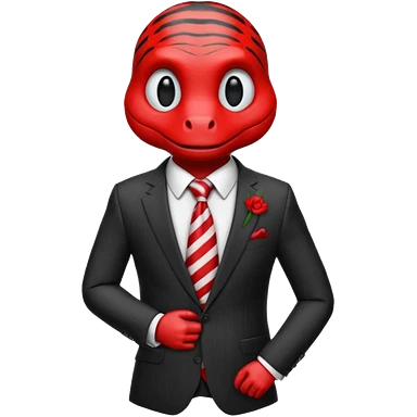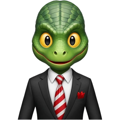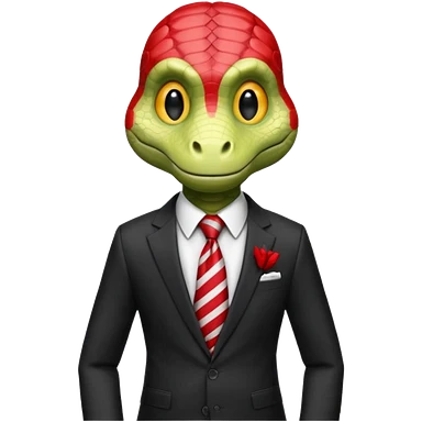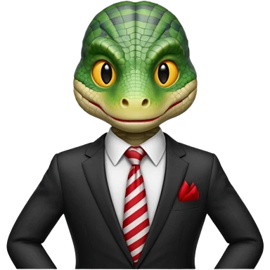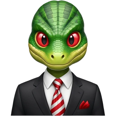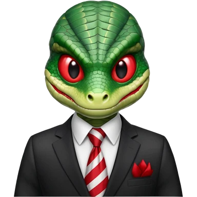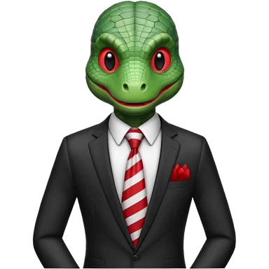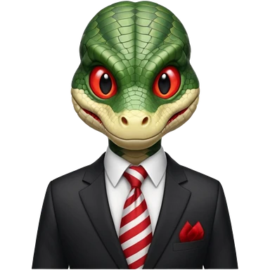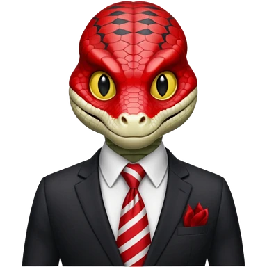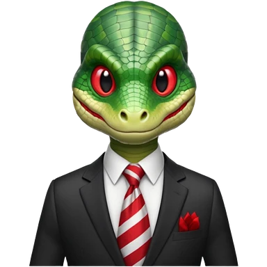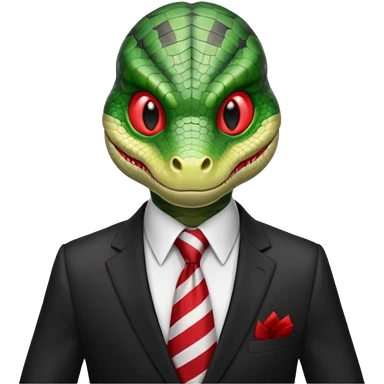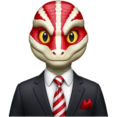 A reptilian humanoid dressing a suit, striped red and white tie, human emoji style, his face is seriously, his eyes is similar to real viper snake eye emoji