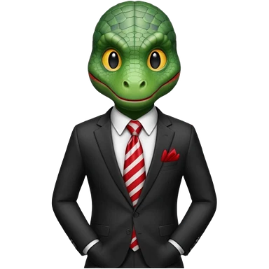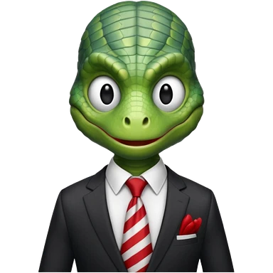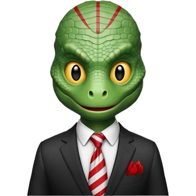 A green reptilian humanoid dressing a suit, striped red and white tie, human emoji style, his face is seriously, his eyes is similar to real viper snake eye emoji