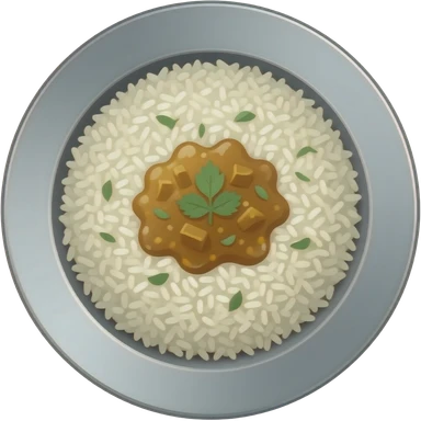 A metal disk holds curry rice emoji