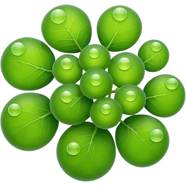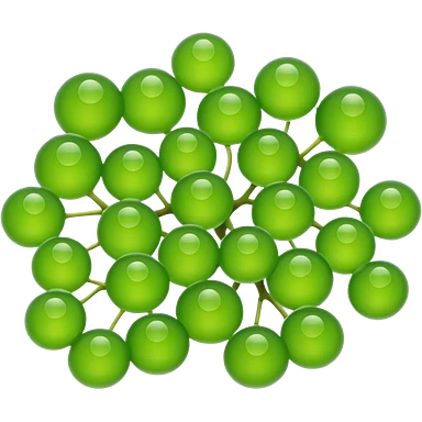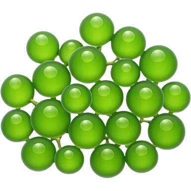 A cute emoji-style sea grape (Caulerpa lentillifera), made of tiny translucent green bubbles clustered together, glossy jelly-like texture, fresh ocean feel, simple and clean emoji design, minimal shading, rounded shapes, bright green color, isolated on transparent background emoji