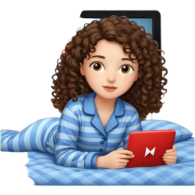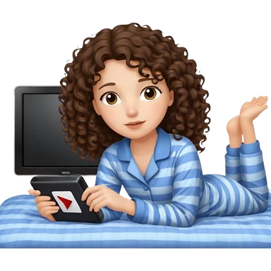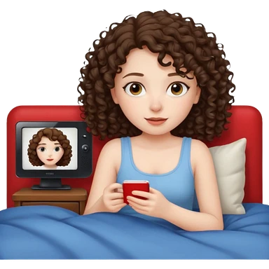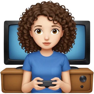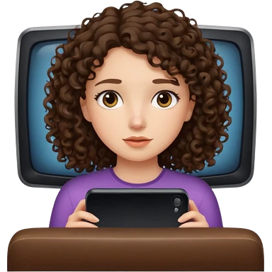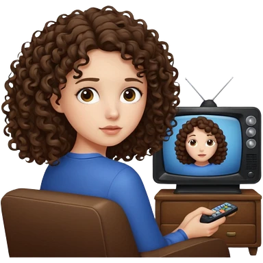 A girl, brunette with curly hair down to her shoulders, watching TV. emoji