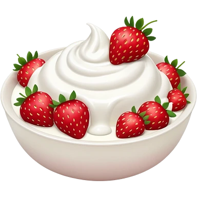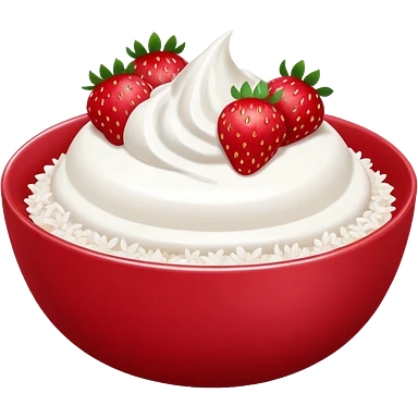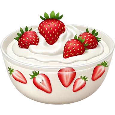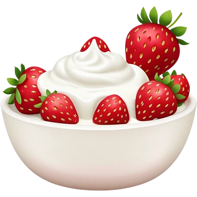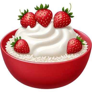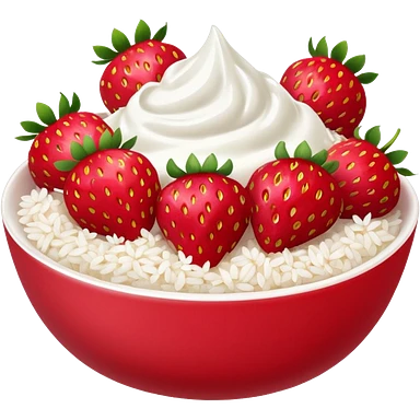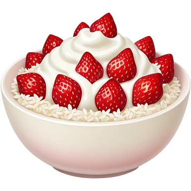 A bowl of strawberries with rice flakes and yogurt. emoji