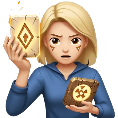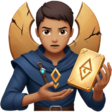 A character slamming a glowing rune tablet, cracks spreading outward mid-impact emoji