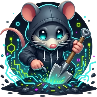 a cool cyberpunk mole mascot, hacker style, wearing a hoodie, glowing eyes, digging through code and data streams, dark background, neon accents, minimal logo style, clean vector, high contrast, tech aesthetic, modern, sharp lines, suitable for GitHub project logo emoji