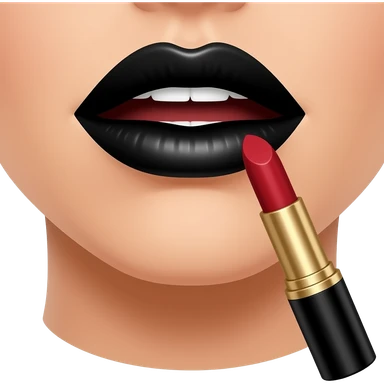A woman's lips painted black with a opened black lipstick shell behind it emoji
