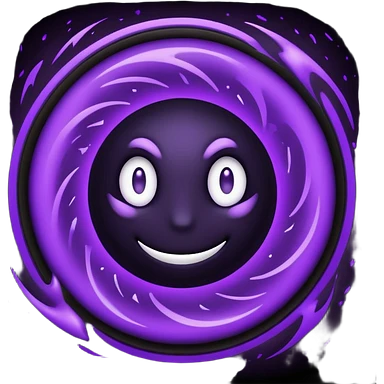 A Discord emoji of a swirling dark void or black hole with violet sparks at the edges. Circular composition, deep shadows, 2D flat vector, white background. emoji
