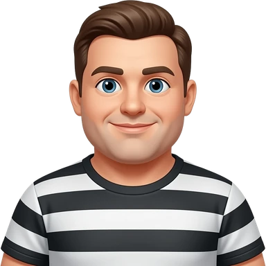 a chubby man with rounded facde mostache wear black and white stripes emoji