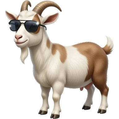 A goat wearing sunglasses in realistic effect with sparkle effect emoji