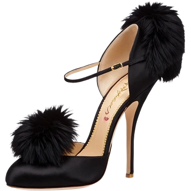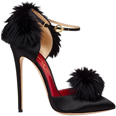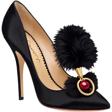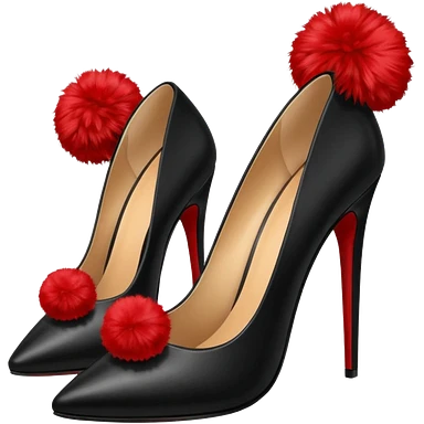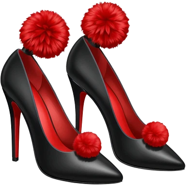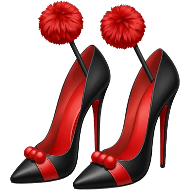 A pair of back high heels with a red Pom-pom emoji