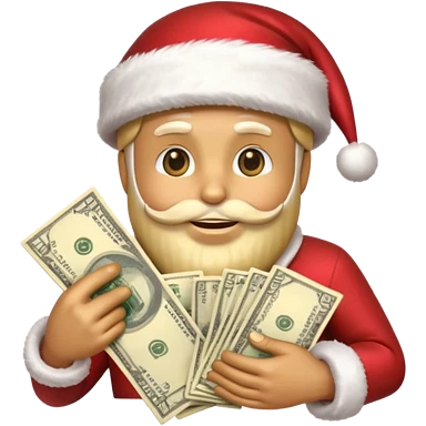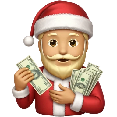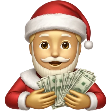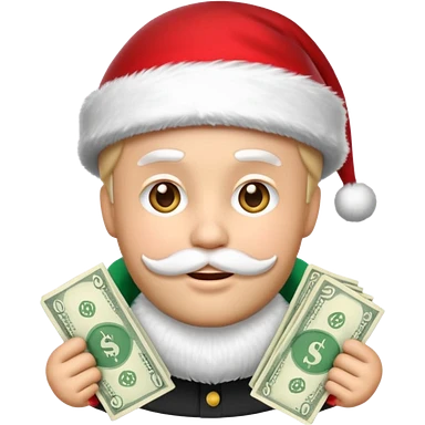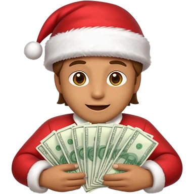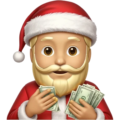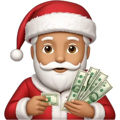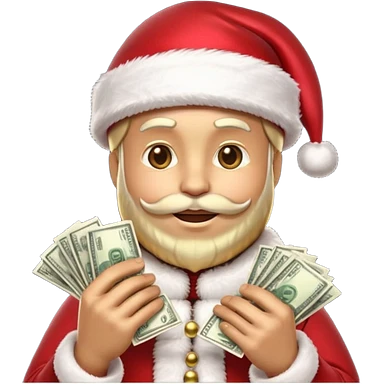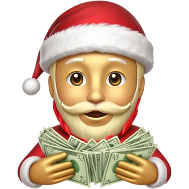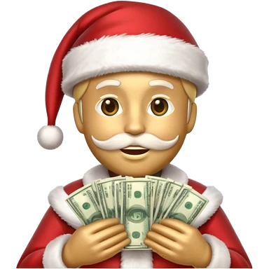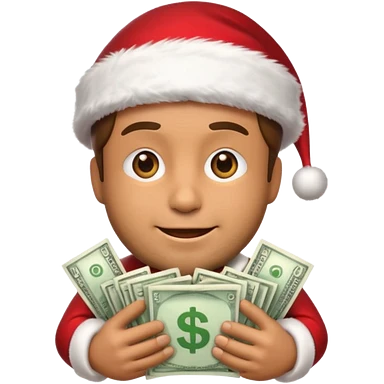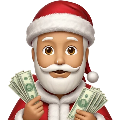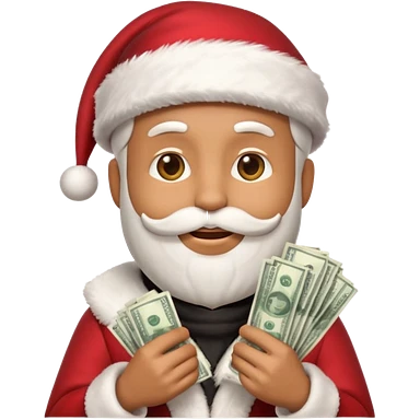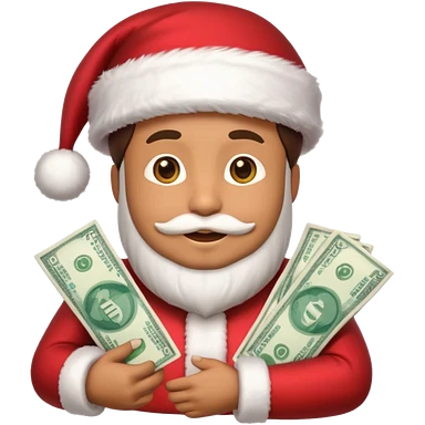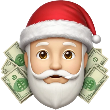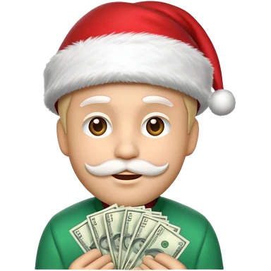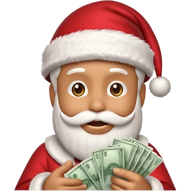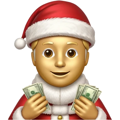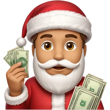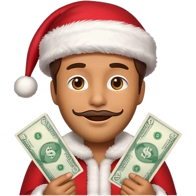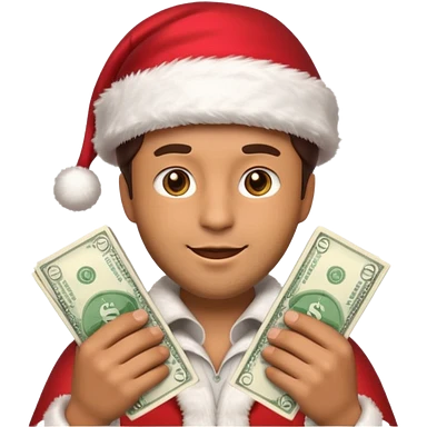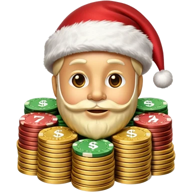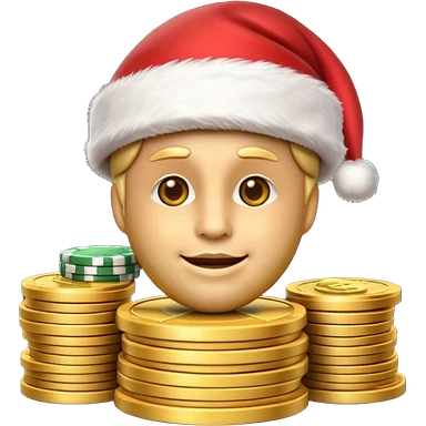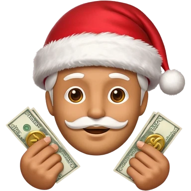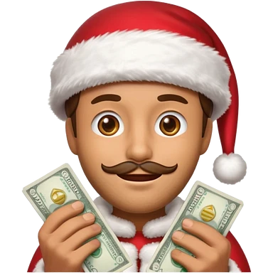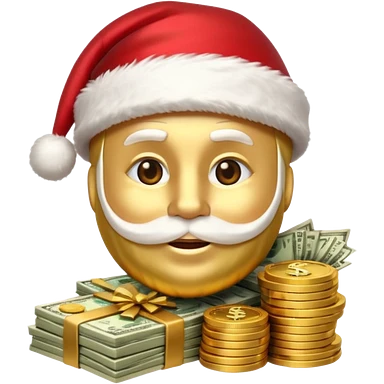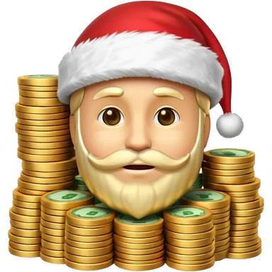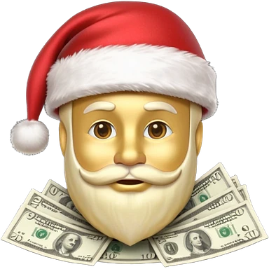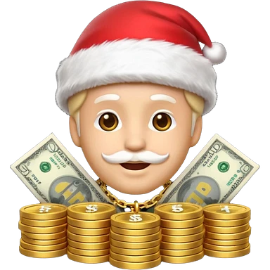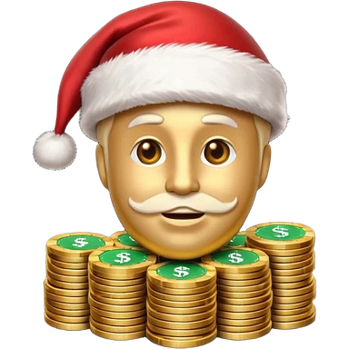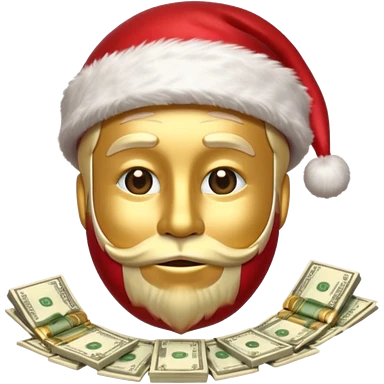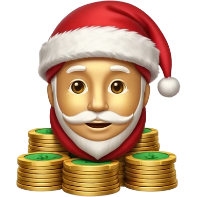 A confident rich emoji face wearing a Santa hat, money stacks, casino vibe, New Year theme, premium 3D emoji style, sharp details, no text, isolated on transparent background emoji