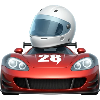A scene of a red ball with helmet window at the front with racing car sponsors emoji