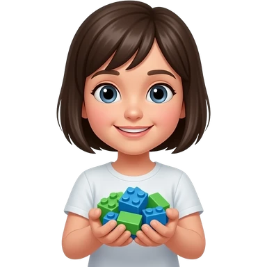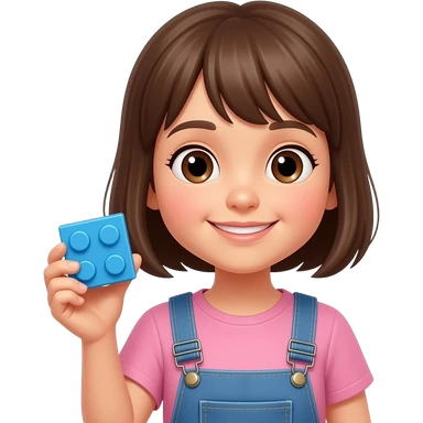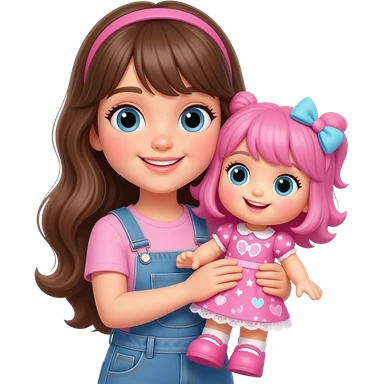 a girl with medium blonde hair and blue eyes, black eyelashes, pink lips emoji