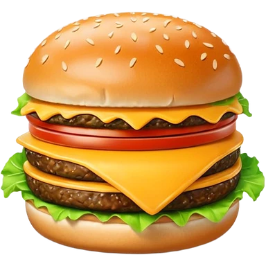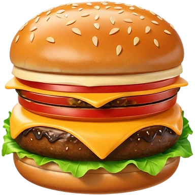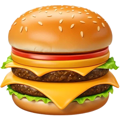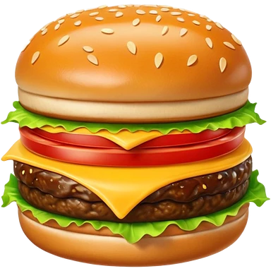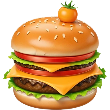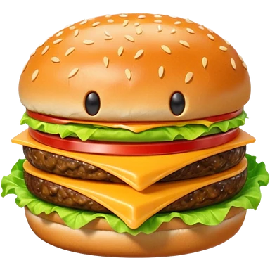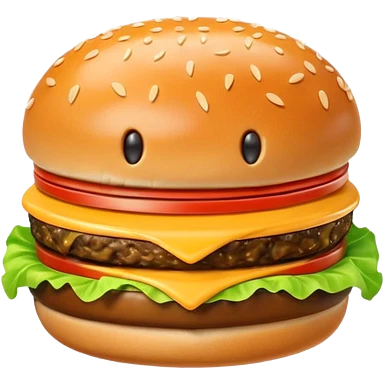 A cute 3D emoji-style burger with glossy finish, shiny bun with sesame seeds, melted cheese, fresh lettuce, smooth cartoon design, soft lighting, clean background, high-quality modern emoji look. emoji