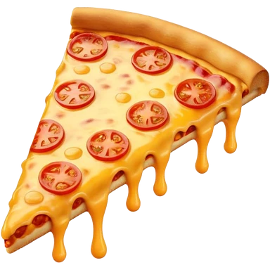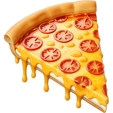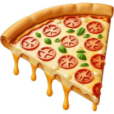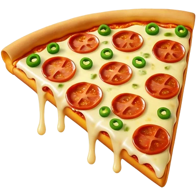 A cute 3D emoji-style pizza slice with glossy finish, thick melted cheese, golden crust, vibrant toppings, smooth cartoon design, soft lighting, clean background, high-quality modern emoji look. emoji