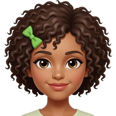 afro hairs girl weaer with brown hairs wear a green bow hair pin emoji