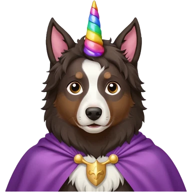 A autralian sheperd with a unicorn and a cape emoji | AI Emoji Generator
